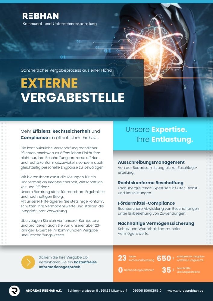 Als verlässlicher Partner stehen wir Ihnen von der Planung bis zur erfolgreichen Vergabe zur Seite – damit Ihre Verwaltung sich auf ihre Kernaufgaben konzentrieren kann.